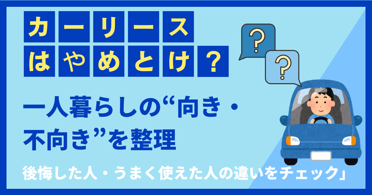 一方で、「多少割高でも、定額で管理しやすくて、ライフスタイルに合わせて車を変えやすいほうがラク」と感じるなら、カーリースは一人暮らしでも十分“アリ”な選択肢になります。
